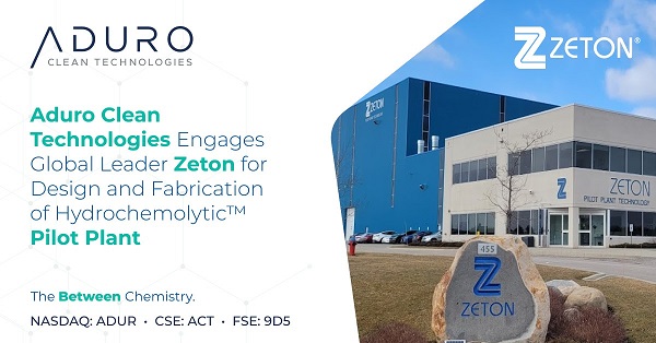 Aduro Clean Technologies Inc. (“Aduro” or the “Company”) (NASDAQ: ADUR) (CSE: ACT) (FSE: 9D5), a clean technology company using the power of chemistry to transform lower value feedstocks, like waste plastics, heavy bitumen, and renewable oils, into resources for the 21st century, is pleased to announce its engagement of Zeton Inc.(“Zeton”)