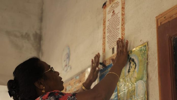 A woman placing the Preamble of the Constitution at her home in Kulathupuzha as part of the Constitution literacy campaign in Kollam district early this year.
