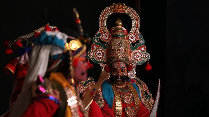 Arjuna, Duryodhana and King of Panchal, Draupada, are lugging their bags into hair and make-up. A singer and the ‘kattiyakaran’ or the jester, are tying a rope to a 10-foot-long bamboo shoot which will substitute a golden bow. In their re-enactment of Panchali’s wedding, potential suitors from the warring families of The Mahabharata — the Pandavas and the Kauravas — must bend a bow and pierce the eye of a golden fish by looking only at its reflection in the water.