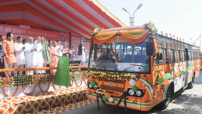 Uttar Pradesh Chief Minister Yogi Adityanath on October 22 flagged off 51 buses of the State transport corporation under “Mission Mahila Sarathi”, on the occasion of Durga Ashtami, in Ayodhya. These buses will be operated exclusively by women as drivers and conductors. “There could not be a more appropriate occasion than the date of ‘Maha Ashtami’ to link with Mission Shakti along with the launch of Mission Mahila Sarathi. The initiative seeks to connect and empower women drivers and conductors,” said Mr. Adityanath. The Chief Minister said that for the all-round development of society, women must be ensured dignity.