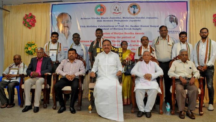 Mr. Naidu presented the Harijan Bandhu Awards to 10 persons and unveiled the portrait of Mahatma Gandhi, Acharya Vinoba Bhave and Didi Nirmala Deshpande during the event.